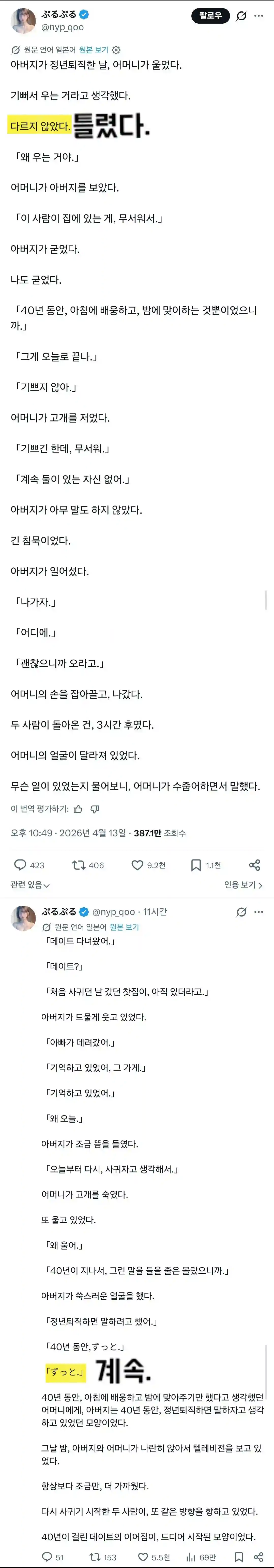 아버지의 정년퇴직 날, 어머니가 울었다.N