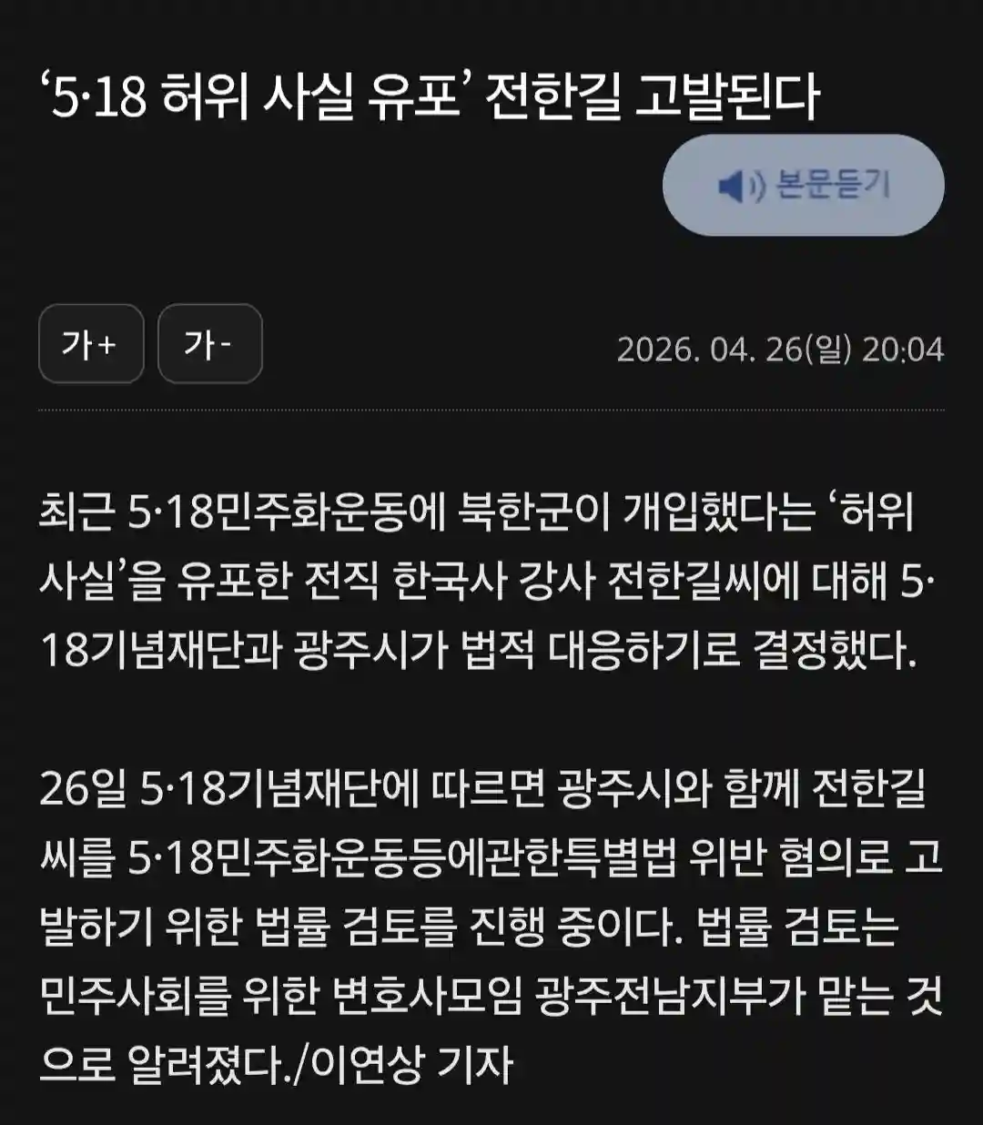 전한길 5.18 비하로 고발당하다.