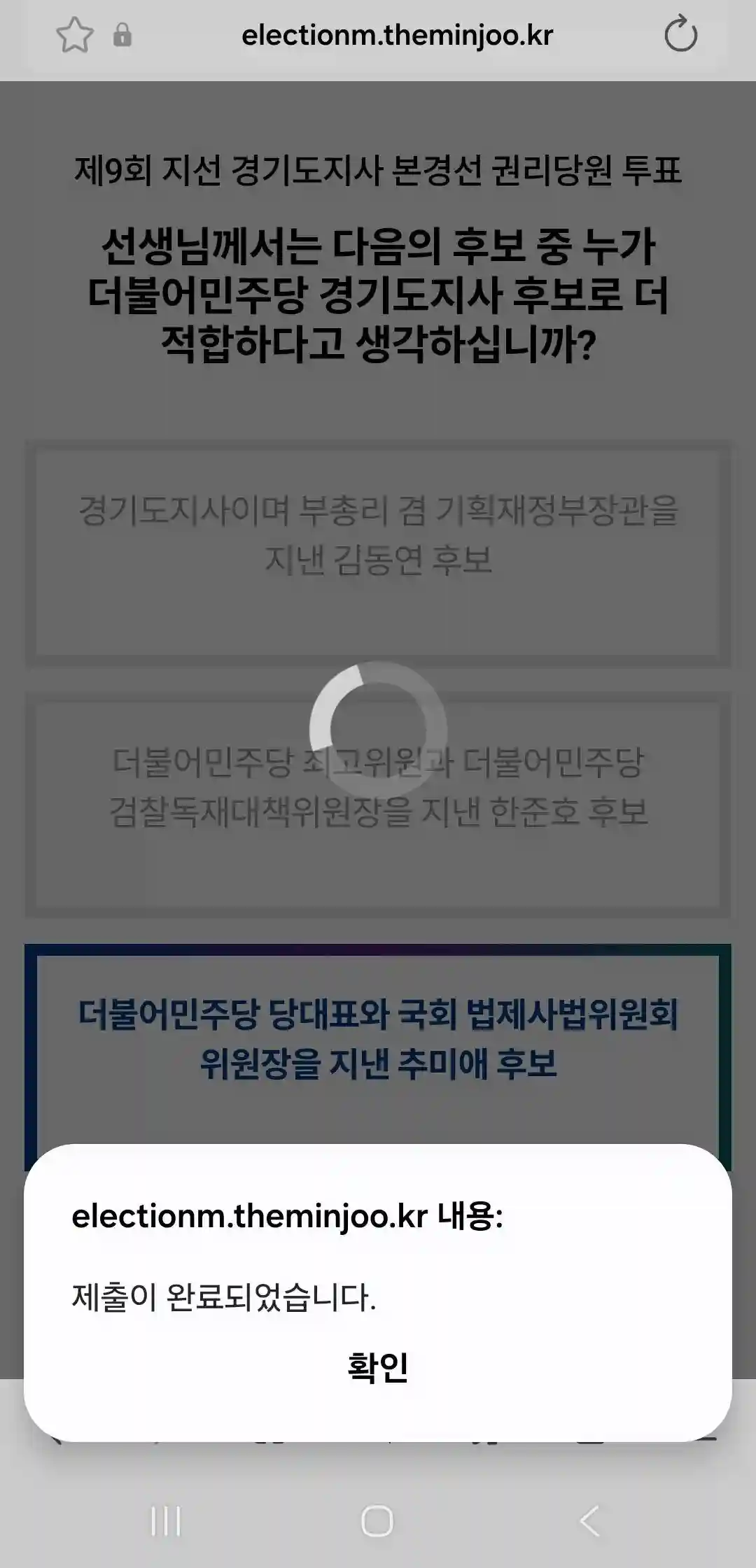 투표인증) 민주당 경기도지사 경선 당원투표 완료