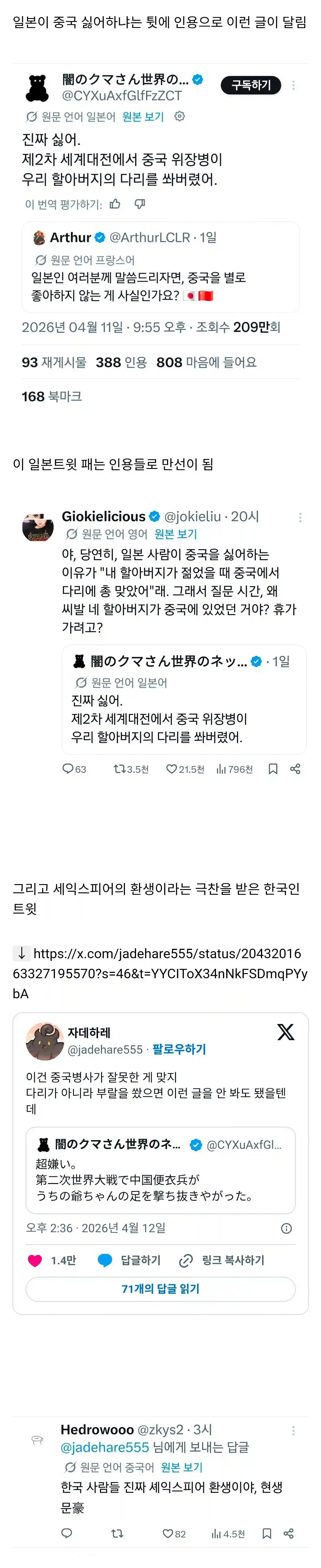 피해자 코스하는 일본인 대차게 패는 트위터 바벨탑