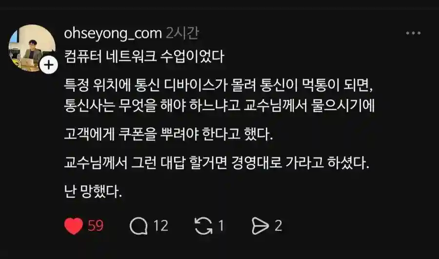 전공을 잘못 선택해 망했다는 사람N