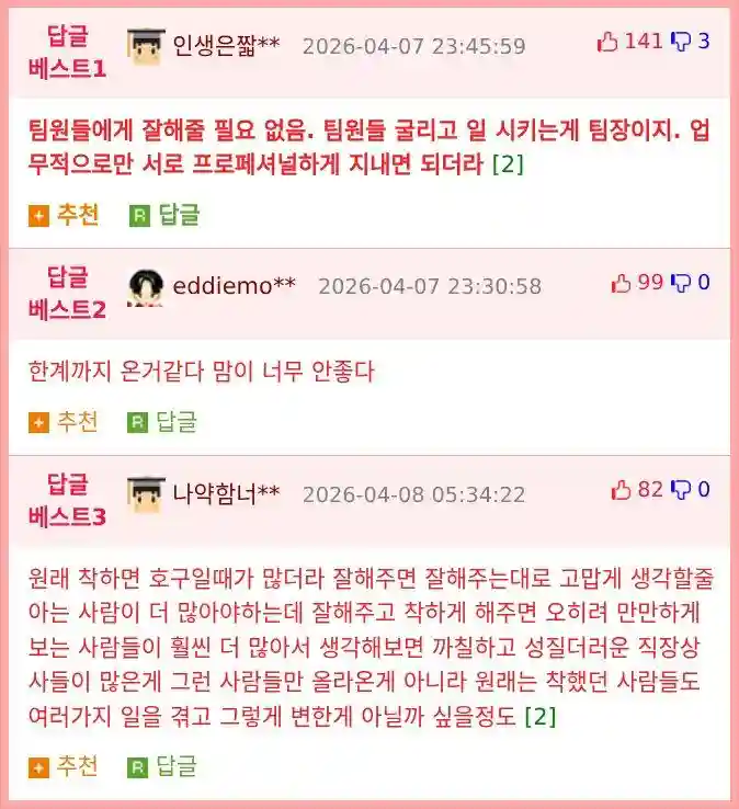 나는 뭐 팀장 하고 싶어서 하냐.blindN