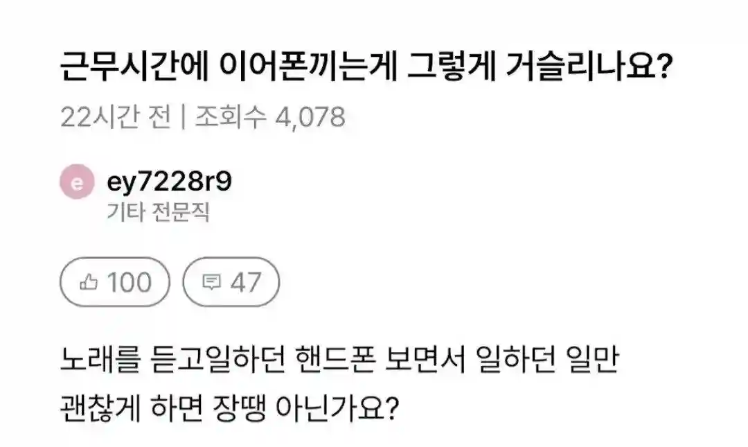 일만 잘하면 이어폰끼고 일해도 문제없지않음?